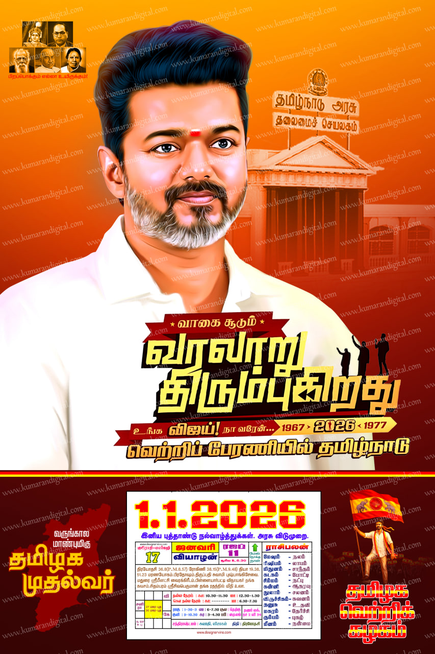 TVK Vijay Calendar Design Psd Collection, 2026 TVK Vijay Political Flex Design Psd file, Tvk Vijay Political Flex Design Psd Collection..